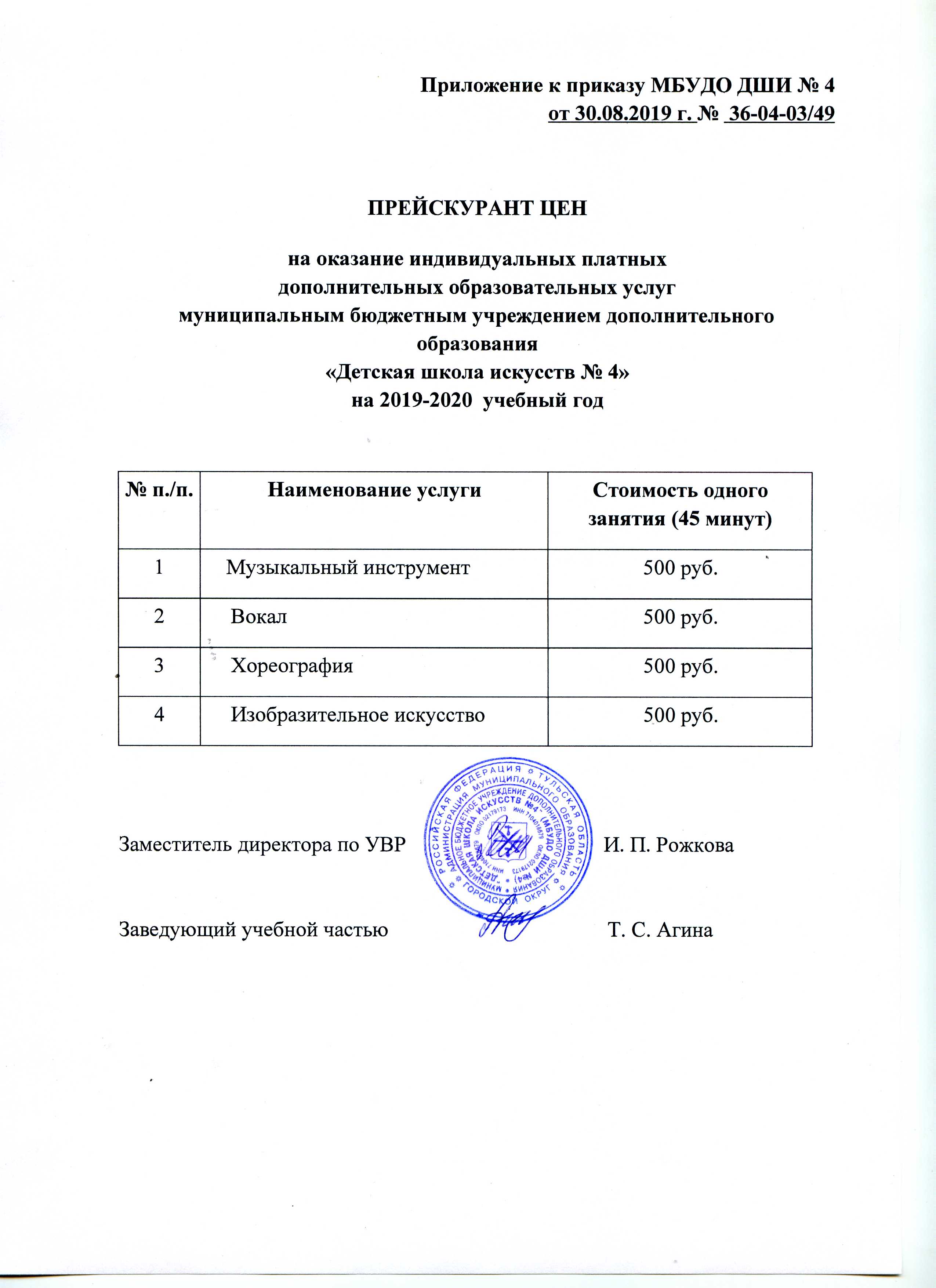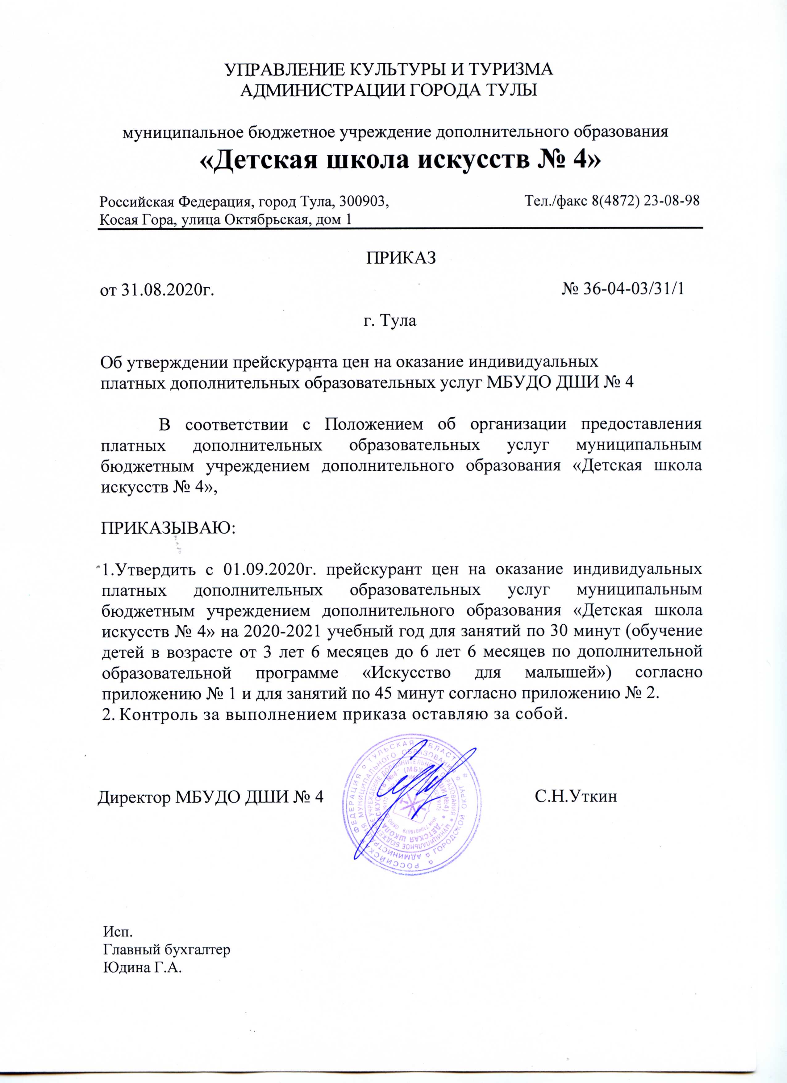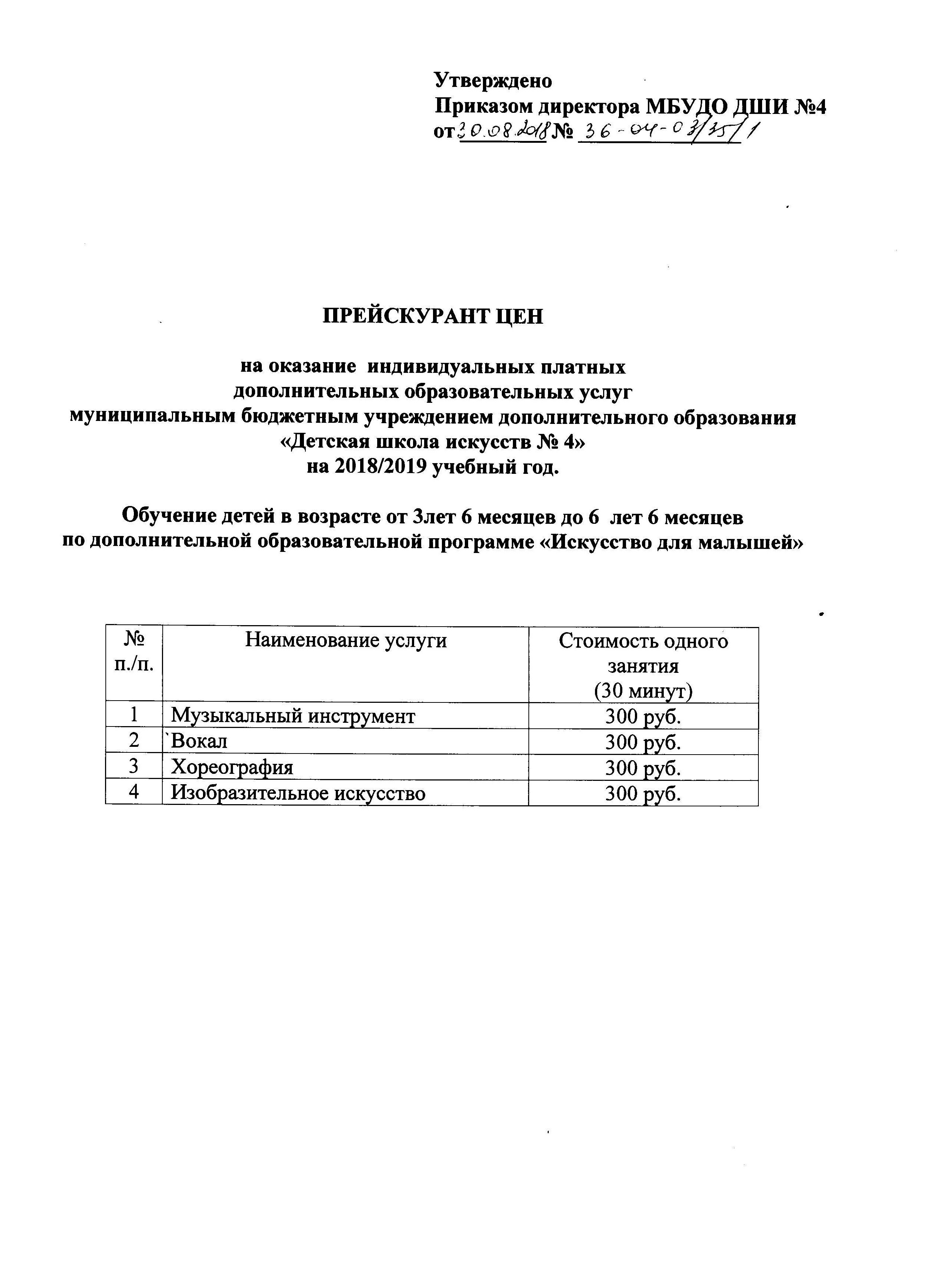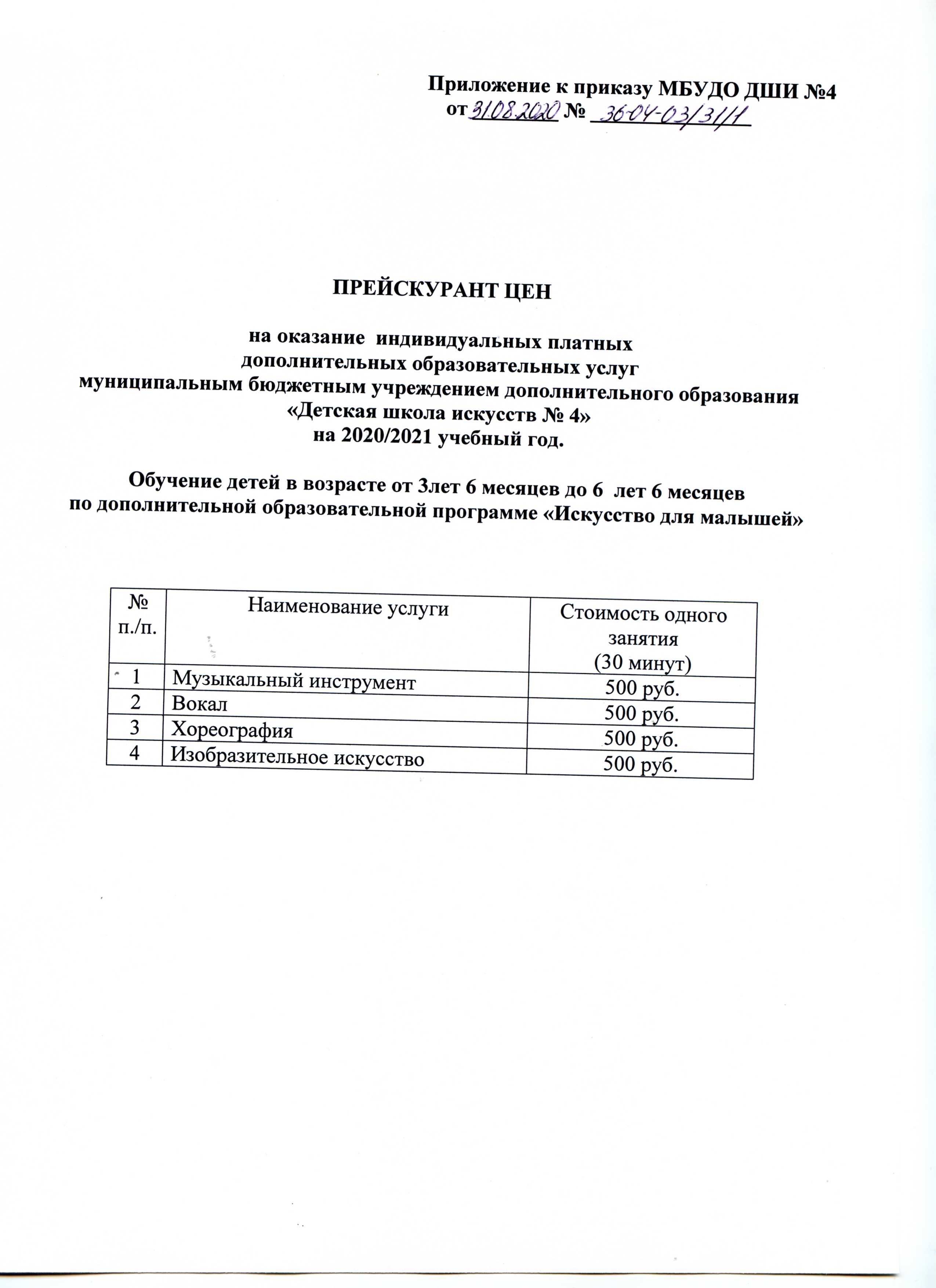 Приказ об утверждении прескуранта цен на 2020-2021 учебный год