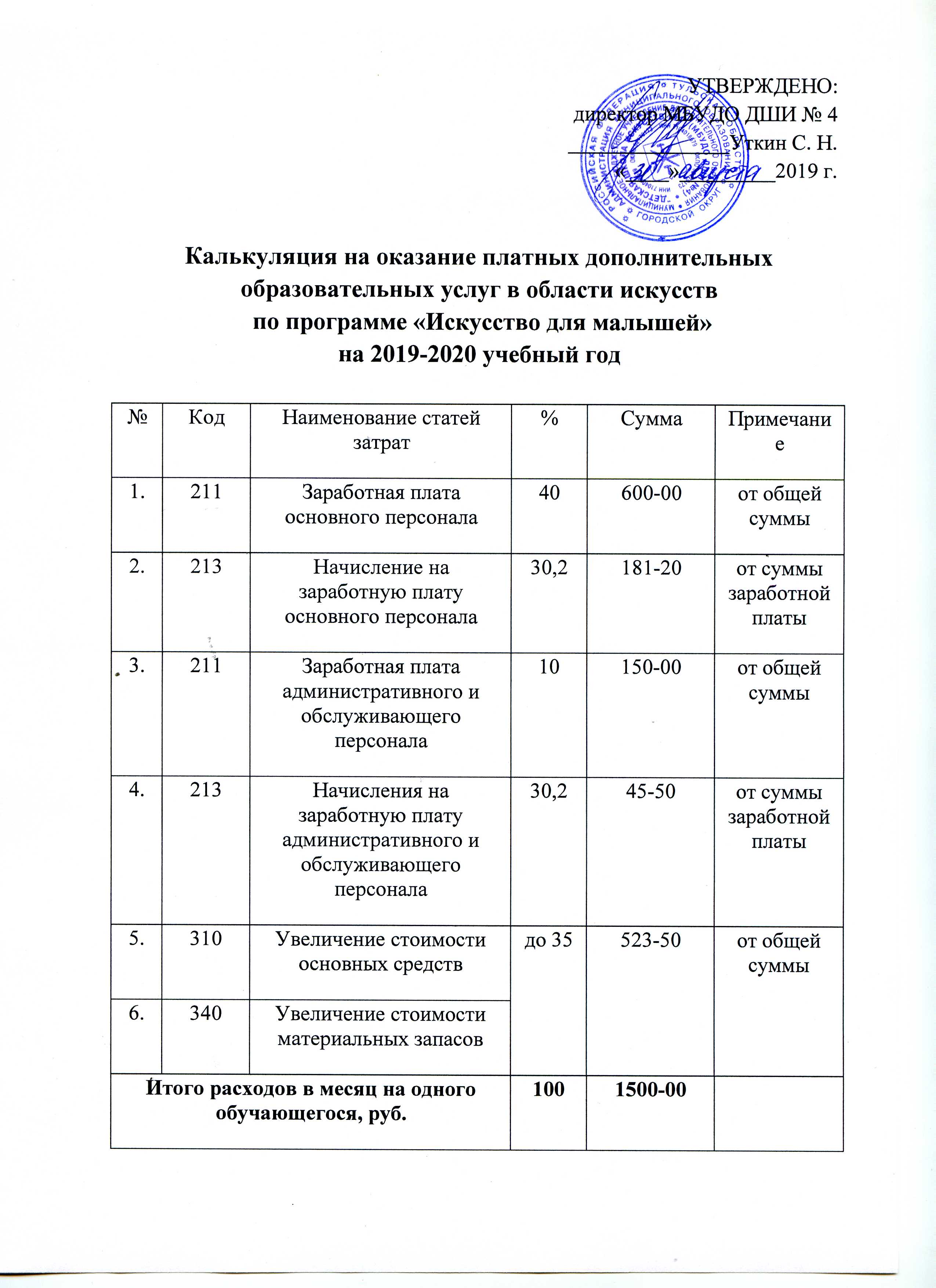 Калькуляция на 2019-2020 учебный год