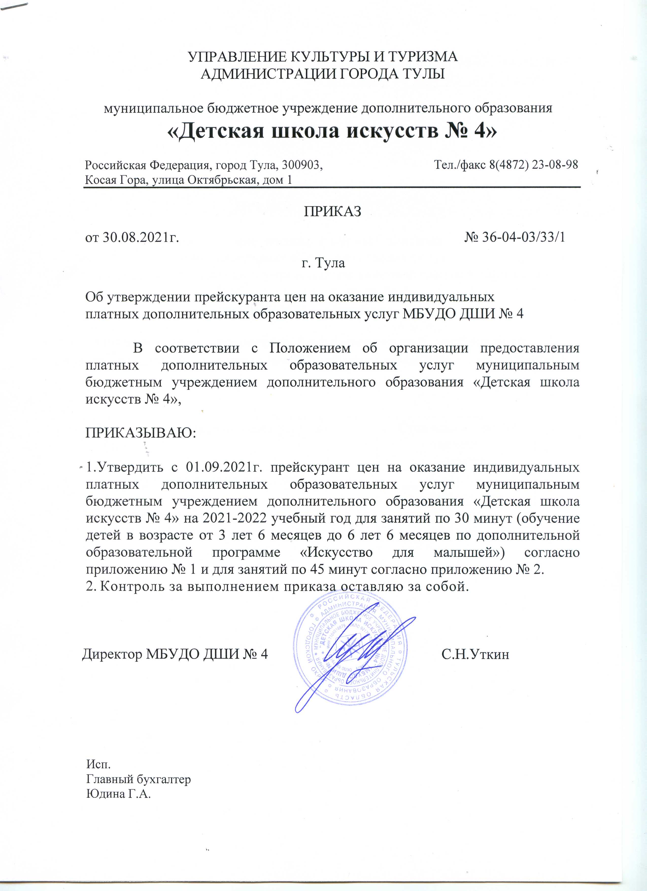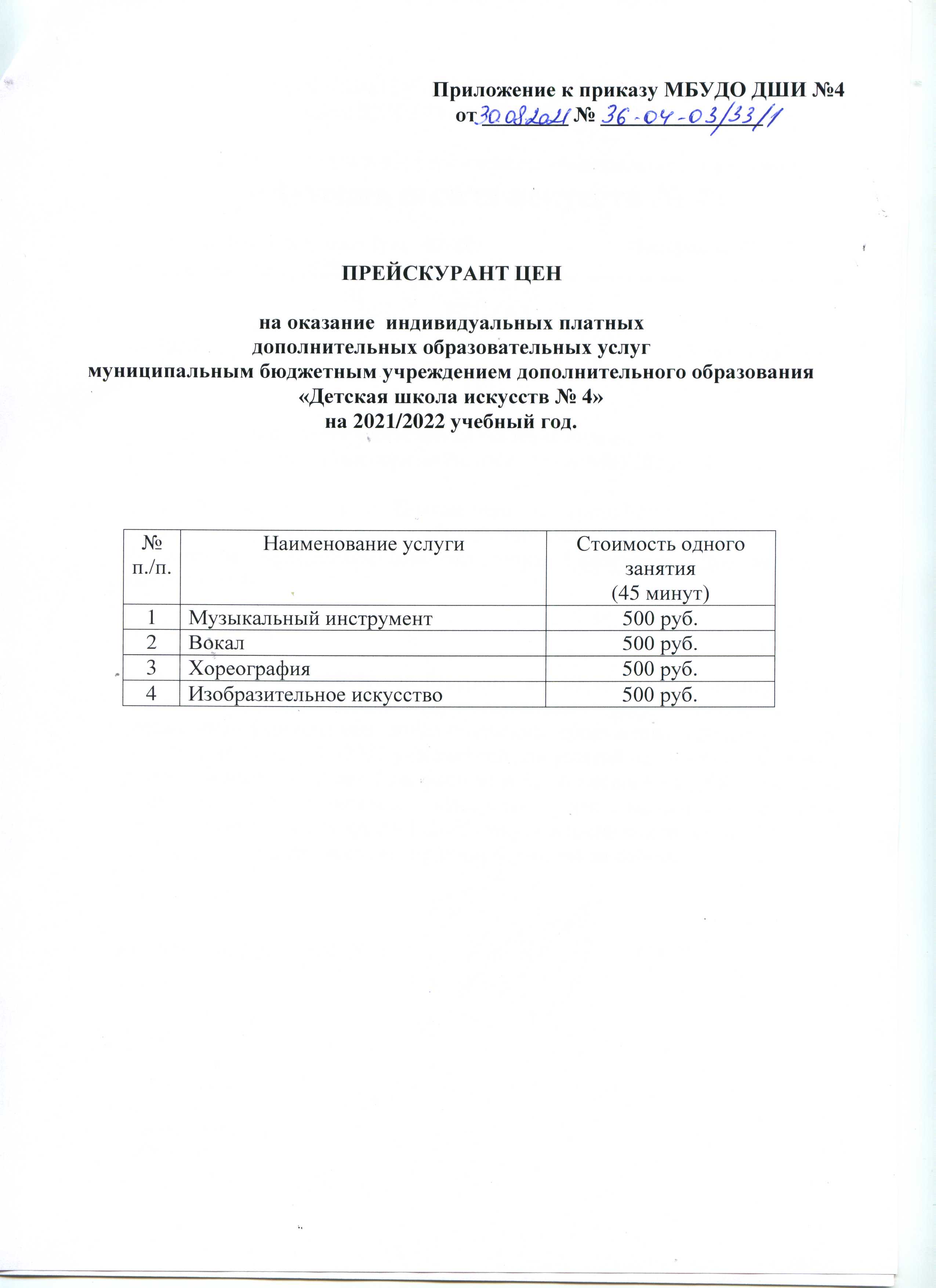 Приказ об утверждении прескуранта цен на 2021-2022 учебный год