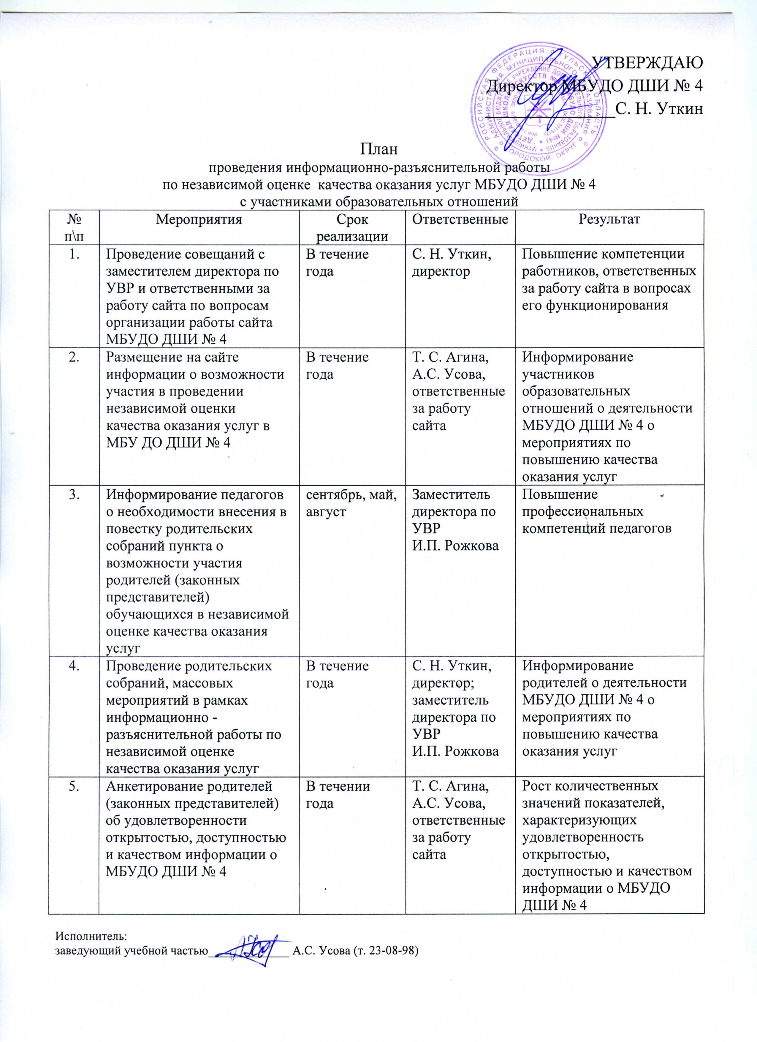 план по независимой оценке качества условия оказания услуг