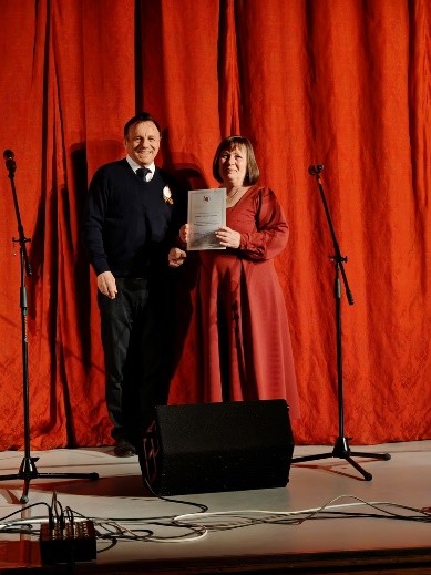 Далее слово предоставили члену Общественной палаты Тульской области, председателю Тульского отделения Союза писателей России - Николаю Алексеевичу Жукову, который вручил благодарственные письма от председателя Общественной палаты Тульской области Цкипури Ю.И.: