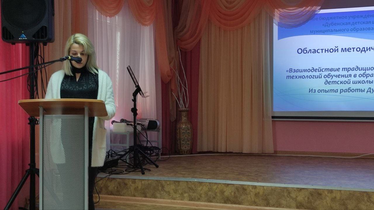 Ключевой момент мероприятия — выступление Елизаветы Ивановны Соловьёвой (заведующий учебной частью ДШИ?№?4). Она представила методическое сообщение о сотрудничестве ДШИ?№?4 и Дубенской ДШИ.