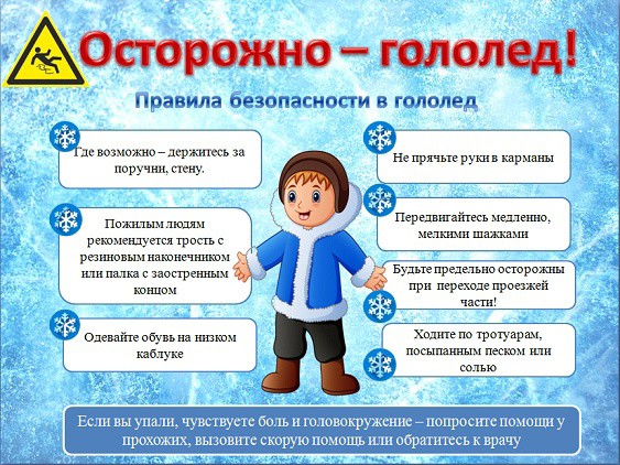 Гололёд — это ледяная корка на дорогах. На ней легко поскользнуться и получить травму.