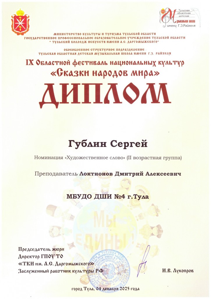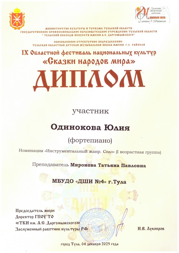 Поздравляем учащихся МБУДО ДШИ №4 с победой в IX Областном фестивале национальных культур "Сказки народов мира":