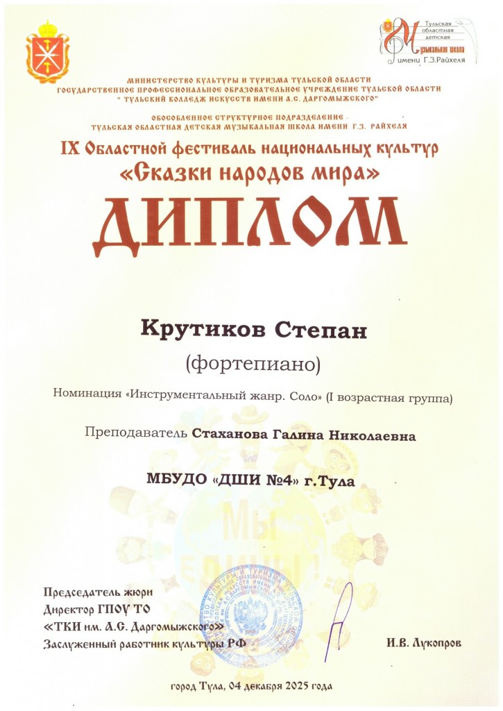 Крутиков Степан - Дипломант (преп. Стаханова Г.Н.)