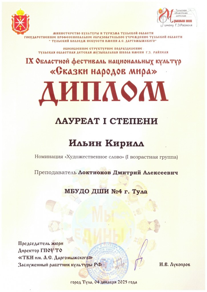 Ильин Кирилл - Лауреат 1 степени (преп.Локтионов Д.А.)