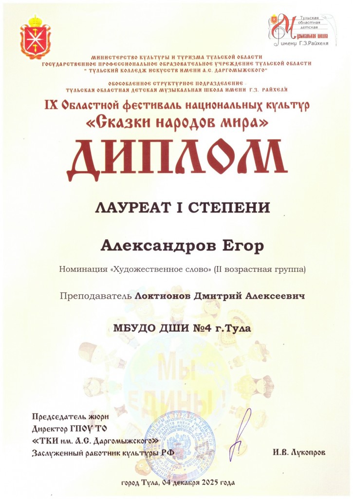 Александров Егор - Лауреат 1 степени (преп.Локтионов Д.А.)