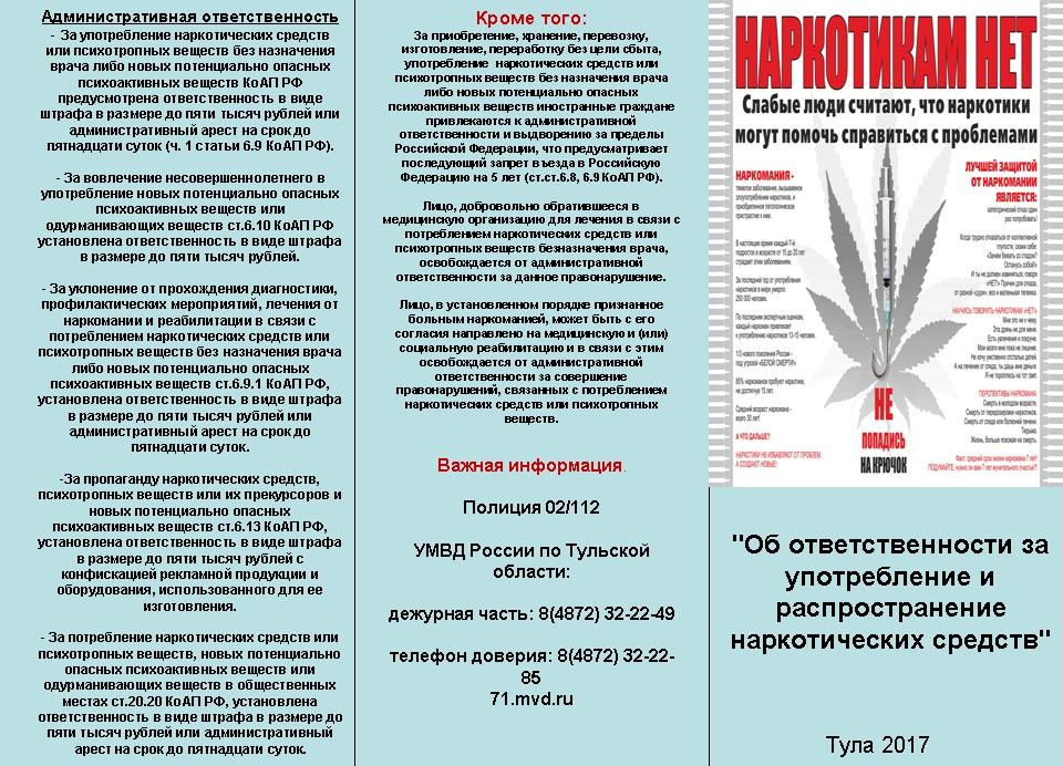 Об ответственности за употребление и распространение наркотических средств
