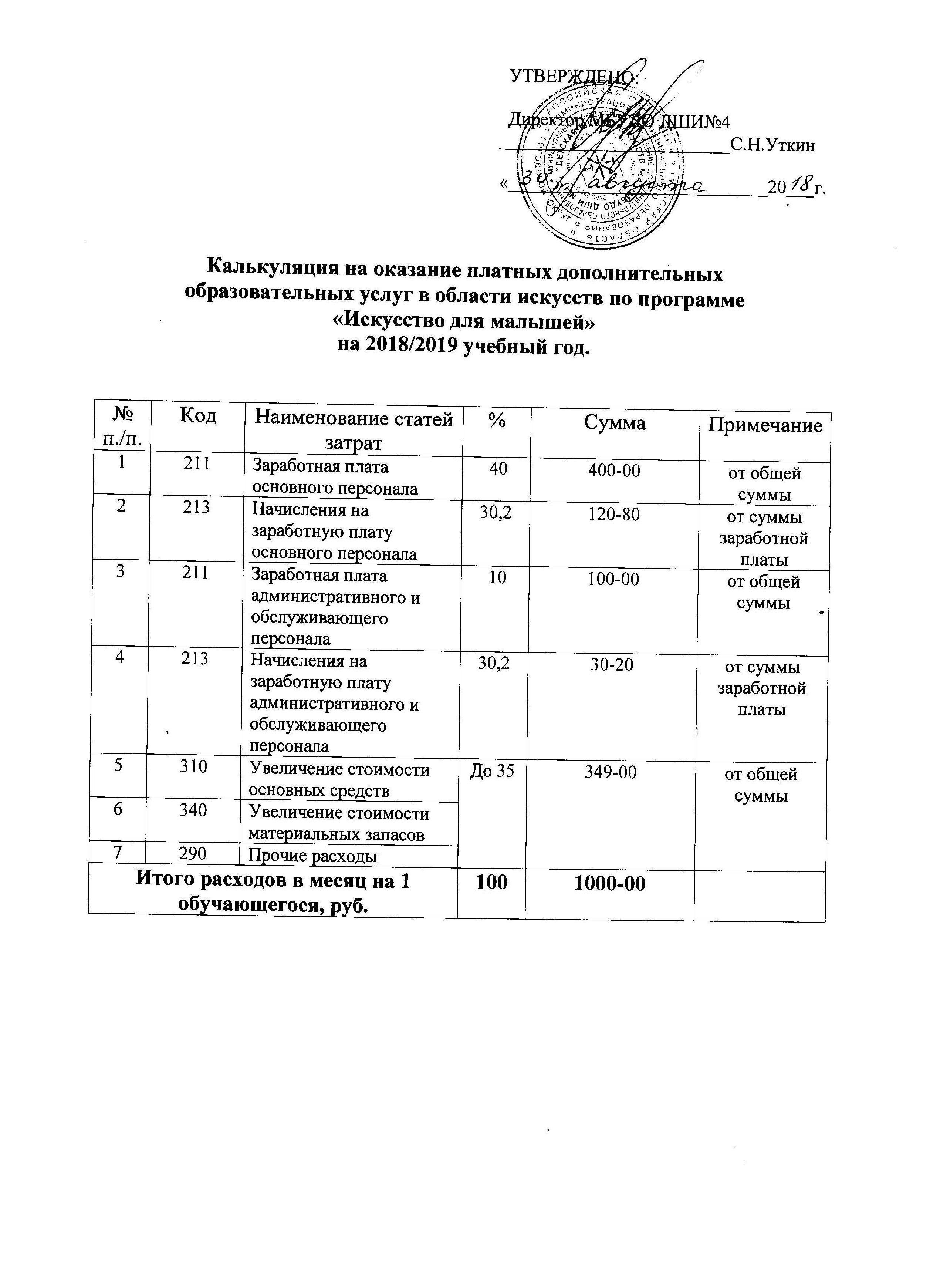 Калькуляция на 2019-2020 учебный год