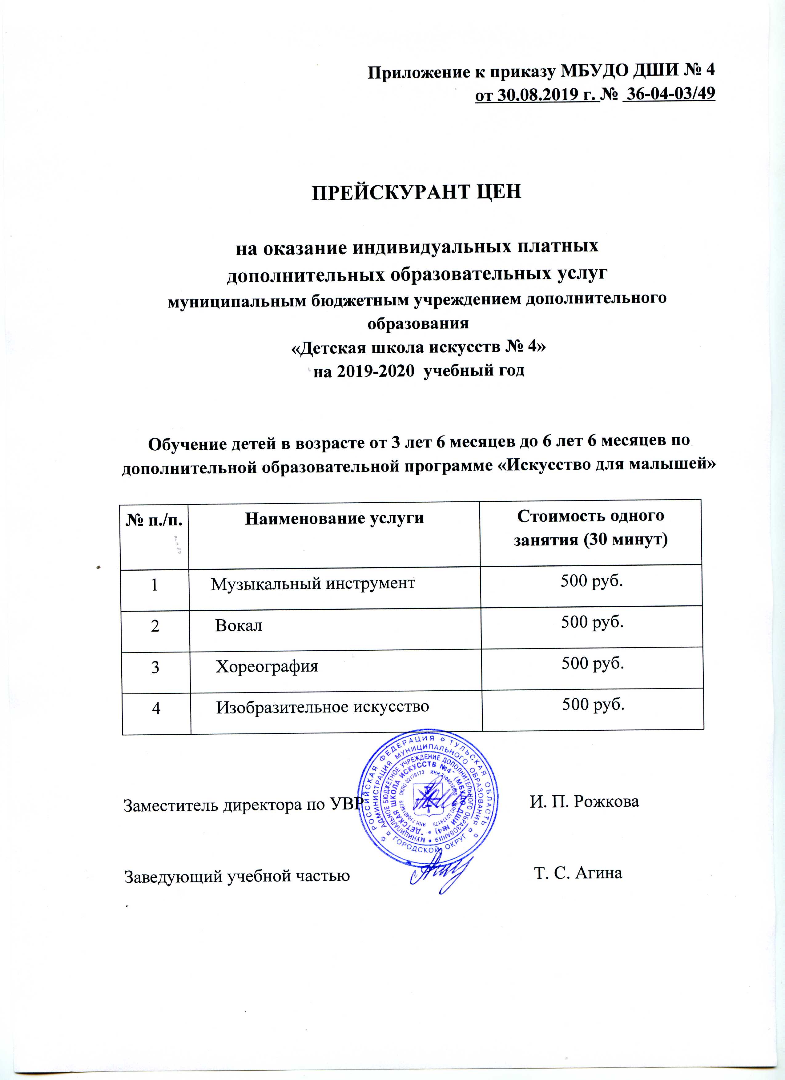 Договор индивидуальные занятия -500 руб. на 2019-2020 учебный год