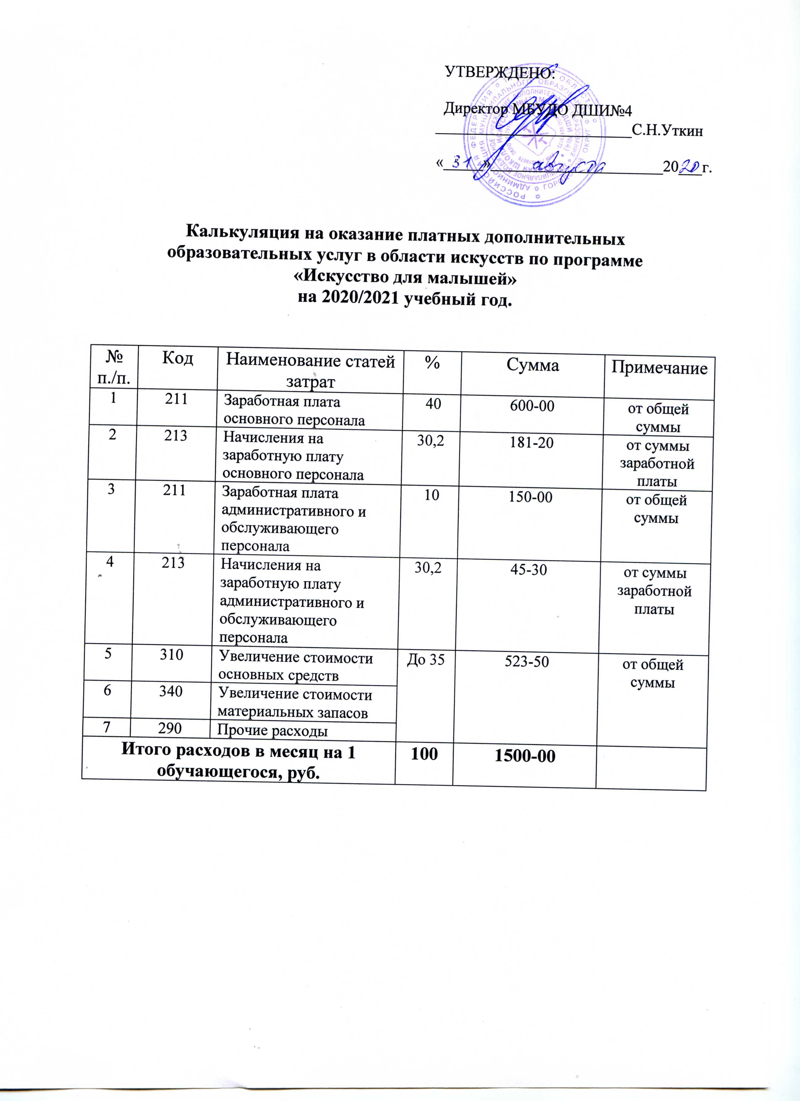 Калькуляция на 2020-2021 учебный год