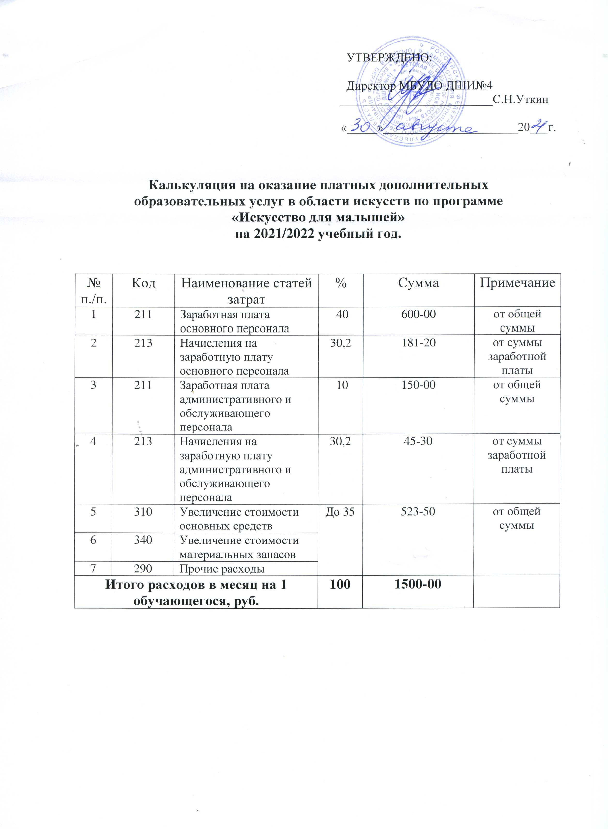 Калькуляция на 2021-2022 учебный год